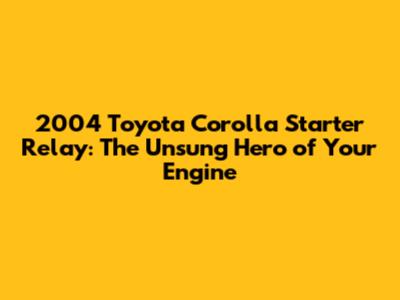 2004 Toyota Corolla Starter Relay: The Unsung Hero of Your Engine