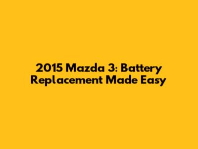 2015 Mazda 3: Battery Replacement Made Easy