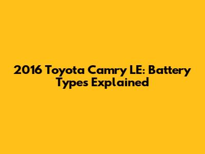 2016 Toyota Camry LE: Battery Types Explained