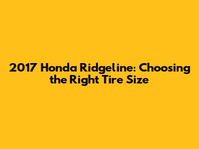 Selecting the appropriate tire size for your 2017 Honda Ridgeline is a crucial aspect of vehicle maintenance. By understanding the factory tire sizes, decoding tire size information, and considering various factors such as driving habits and weather conditions, you can make an informed decision that ensures optimal performance, safety, and fuel efficiency. Always refer to your vehicle's doorjamb sticker and owner's manual for accurate tire size information, and don't hesitate to seek expert advice from tire professionals when needed.