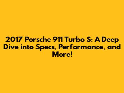 Hey everyone! Today, we're diving headfirst into a true legend: the 2017 Porsche 911 Turbo S. This beast of a car isn't just a sports car; it's a statement. A statement about speed, luxury, and the relentless pursuit of driving perfection. If you're a car enthusiast, a Porsche aficionado, or just someone who appreciates incredible engineering, you're in the right place. We're going to break down everything you need to know about the 2017 Turbo S, from its blistering performance specs to its luxurious interior and everything in between. Buckle up; it's going to be a fun ride!