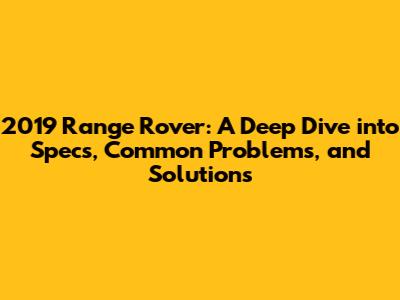 2019 Range Rover: Specs, Problems & Solutions