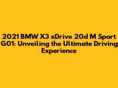 Alright, car enthusiasts, let's dive headfirst into the world of the 2021 BMW X3 xDrive 20d M Sport G01. This isn't just any SUV; it's a sleek, sporty, and sophisticated machine that seamlessly blends performance, luxury, and practicality. We're going to break down everything you need to know about this fantastic vehicle, from its head-turning design to its impressive engine and the tech-packed interior. Whether you're considering buying one, or just curious about what makes this Bimmer tick, you've come to the right place. So, buckle up, and let's get started!