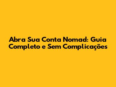 Abra Sua Conta Nomad: Guia Completo E Sem Complicações
