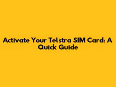 Activate Your Telstra SIM Card: A Quick Guide