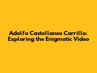 Adolfo Castellanos Carrillo: Unveiling The Enigmatic Video