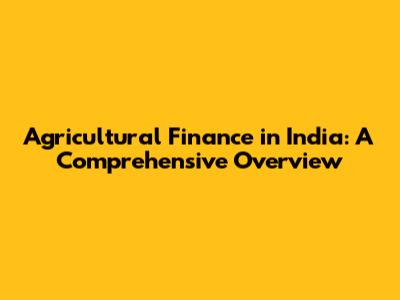Agricultural Finance In India: A Comprehensive Overview