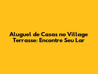Aluguel De Casas No Village Terrasse: Encontre Seu Lar