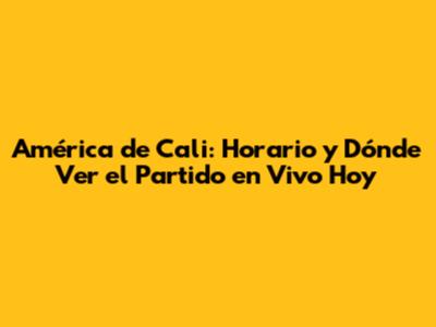 América De Cali: Horario Y Dónde Ver El Partido En Vivo Hoy