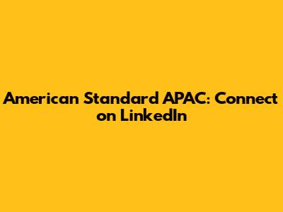 American Standard APAC: Connect On LinkedIn