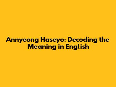 Annyeong Haseyo: Unpacking The Meaning And Usage In English