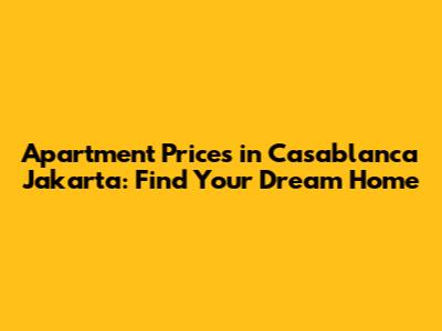 Apartment Prices In Casablanca Jakarta: Find Your Dream Home