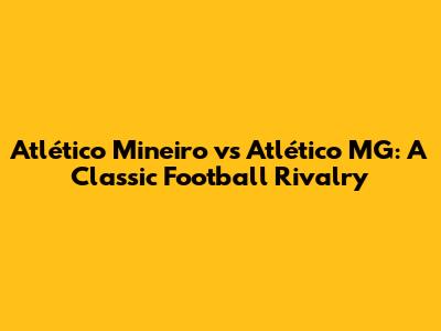 Atlético Mineiro Vs Atlético MG: A Classic Football Rivalry