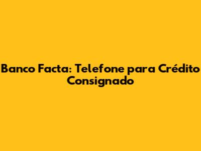 Banco Facta: Telefone Para Crédito Consignado