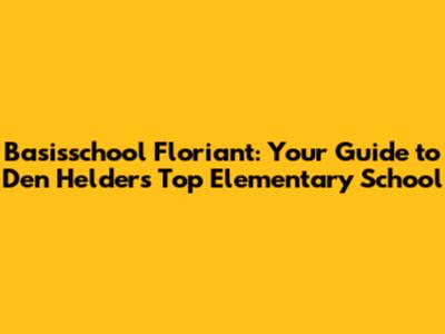 Basisschool Floriant: Your Guide To Den Helder's Top Elementary School