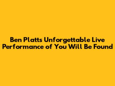 Hey guys! Let's dive into something truly special – Ben Platt's live rendition of "You Will Be Found." This isn't just any performance; it's a powerful, emotional journey that resonates deeply with anyone who's ever felt lost or alone. Seriously, if you haven't experienced it yet, you're in for a treat. We're going to break down why this performance is so impactful, what makes it stand out, and why it continues to touch hearts around the globe. So, grab your headphones, maybe a tissue or two, and let's get started!