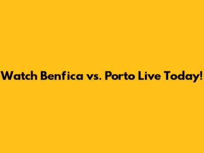 Benfica Vs Porto: Watch Live Today!