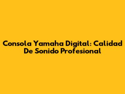 Consola Yamaha Digital: Calidad De Sonido Profesional