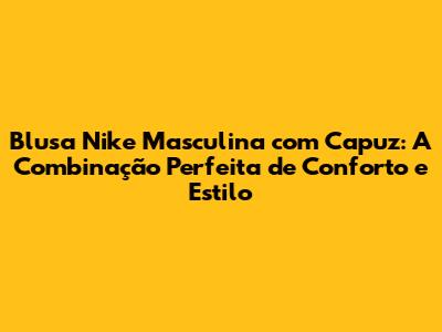 Blusa Nike Masculina Com Capuz: Conforto E Estilo Em Um Só Item