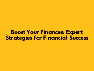 Boost Your Finances: Expert Strategies for Financial Success