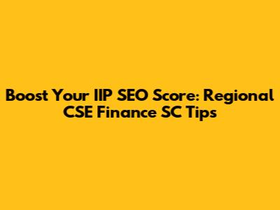 Boost Your IIP SEO Score: Regional CSE Finance SC Tips