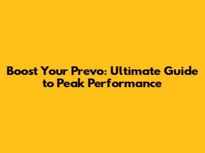 Boost Your Prevo: Ultimate Guide To Peak Performance