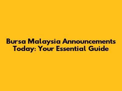 Hey guys! Navigating the stock market can feel like trying to find your way through a maze, right? Especially when it comes to keeping up with the latest news and announcements. But don't worry, because this guide is designed to break down everything you need to know about Bursa Malaysia announcements today. We'll cover the key aspects, help you understand the jargon, and make sure you're well-equipped to make informed decisions. So, let's dive in and explore the exciting world of Malaysian stocks!