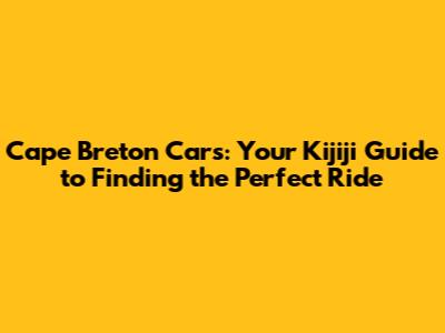 Cape Breton Cars: Your Kijiji Guide To Finding The Perfect Ride