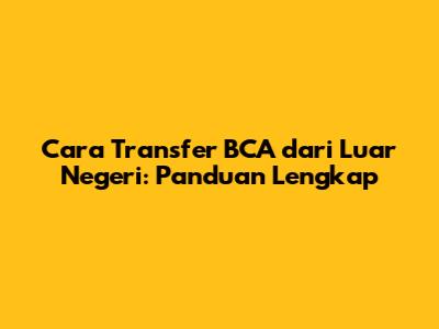 Cara Transfer BCA Dari Luar Negeri: Panduan Lengkap