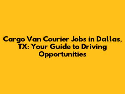 Cargo Van Courier Jobs In Dallas, TX