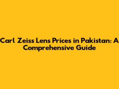 Carl Zeiss Lens Prices In Pakistan: A Comprehensive Guide