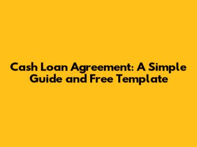 What is a Cash Loan Agreement?