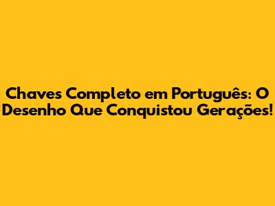 Chaves Completo Em Português: O Desenho Que Conquistou Gerações!