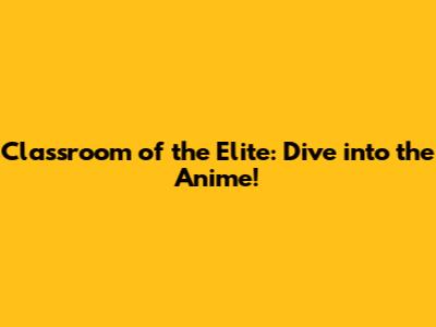 Classroom Of The Elite: Dive Into The Anime!