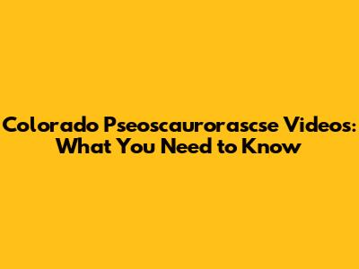 Colorado Pseoscaurorascse Videos: What You Need To Know