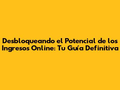 Desbloqueando el Potencial de los Ingresos Online: Tu Guía Definitiva