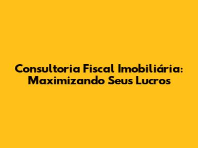 Consultoria Fiscal Imobiliária: Maximizando Seus Lucros