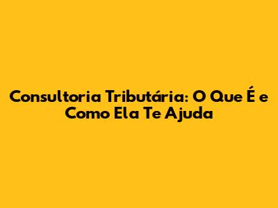Consultoria Tributária: O Que É E Como Ela Te Ajuda