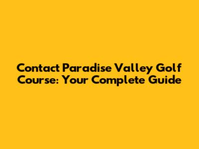 Contact Paradise Valley Golf Course: Phone & Info