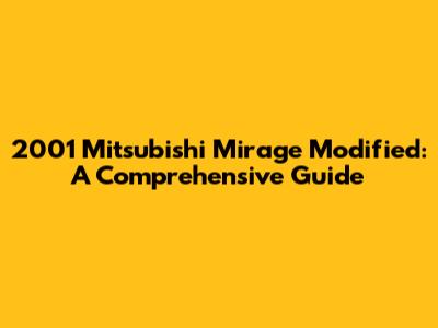 So, there you have it – a bunch of ways to mod your 2001 Mitsubishi Mirage! Whether you're after better performance, a sweet new look, or just a comfier ride, there's something for everyone. Just remember to do your research, plan your mods carefully, and always prioritize safety. With a little bit of effort and creativity, you can turn your Mirage into a unique ride that reflects your personal style. Happy modding!