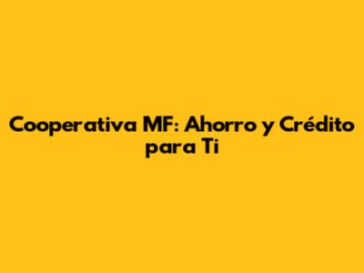 Cooperativa MF: Ahorro Y Crédito Para Ti