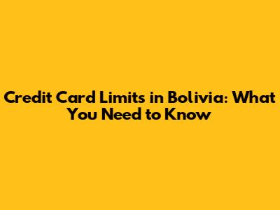 Credit Card Limits In Bolivia: What You Need To Know