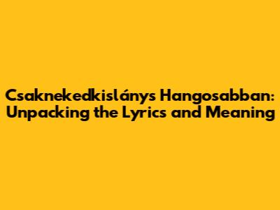 Hey music lovers! Ever gotten a song stuck in your head and just had to know what it's all about? Well, if you're vibing to Csaknekedkislány's tunes, you're in the right place. Today, we're diving deep into their hit track, "Hangosabban" (which translates to "Louder" in English), to explore the lyrics, the meaning, and all the feels it brings. Buckle up, because we're about to dissect this gem and uncover the stories it tells.
