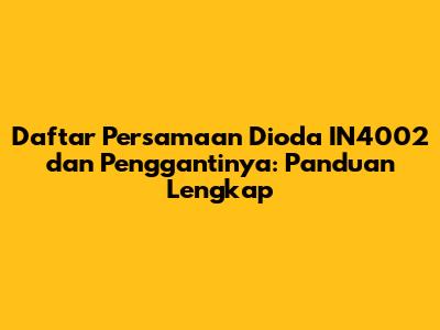 Berikut adalah beberapa persamaan dioda IN4002 dan pengganti dioda IN4002 yang umum digunakan: