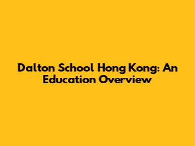 Dalton School Hong Kong: An Education Overview