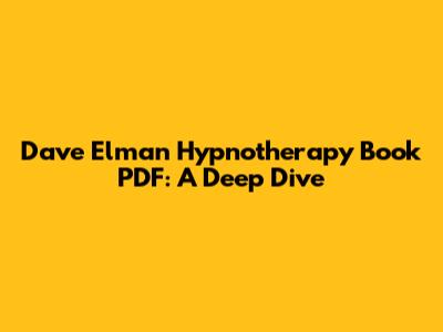 Dave Elman Hypnotherapy Book PDF: A Deep Dive