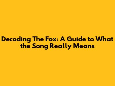 Decoding 'The Fox': A Guide To What The Song Really Means