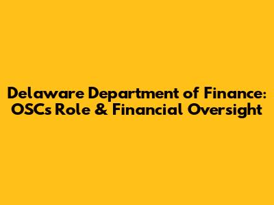 Delaware Department Of Finance: OSC's Role & Financial Oversight