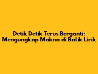 Guys, pernah nggak sih kalian dengerin lagu yang liriknya tuh kayak ngomongin banget sama perasaan kalian? Nah, kali ini kita mau bedah tuntas lagu "Detik Detik Terus Berganti". Lagu ini tuh bener-bener nyentuh hati, ngajak kita merenungin gimana waktu yang terus berjalan dan semua perubahan yang menyertainya. Yuk, kita selami bareng makna mendalam dari lagu ini, lirik demi lirik, biar makin greget pas dengerinnya!