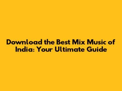 Download The Best Mix Music Of India: Your Ultimate Guide